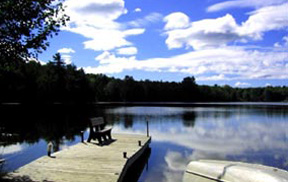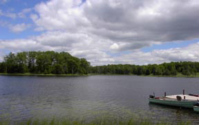 Dog Lake is a 36 acre, 44 foot deep lake located just south of Little Bass Lake, and has a lot of lily pads and a couple of beaver houses. Since 1992, this lake has been managed for largemouth bass and bluegills, and is where the kids have the most action.