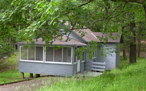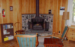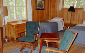 Little Grey is the smallest cabin we offer. The one room has two twin beds and a sitting area with Franklin fireplace and wet bar and is paneled in pine. There is also a full bath and furnace heat.